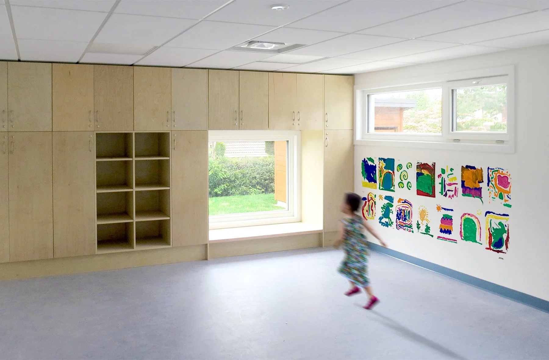 Child-focused interior and exterior learning spaces, designed in close collaboration with municipal client.